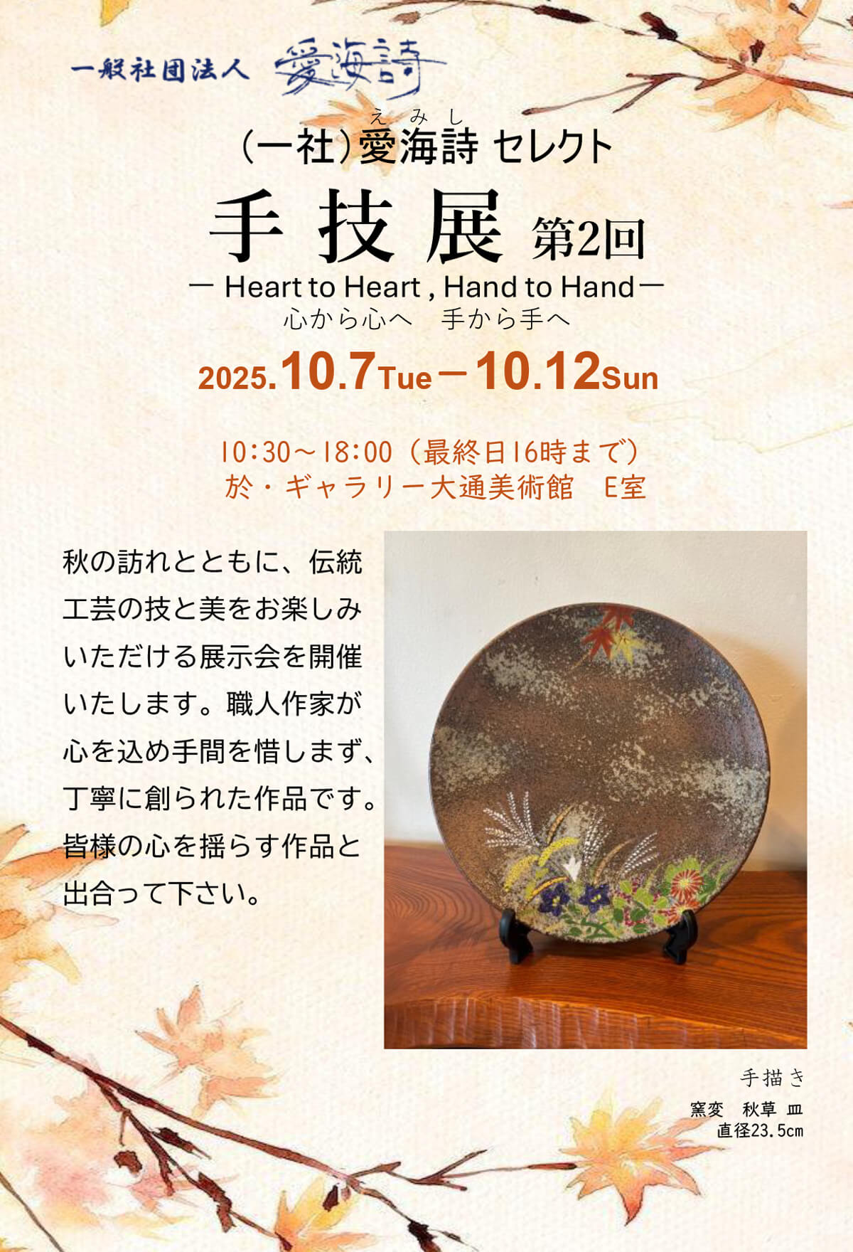 社団について フォトギャラリー 会報・イベントお問い合わせ 会員募集 instagram BULLETIN / EVENT会報・イベント (一社)愛海詩セレクト 手技展 第2回 ― Heart to Heart , Hand to Hand ― TOPページに戻る
